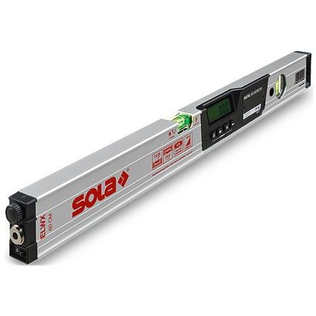 Dotata di inclinometro elettronico solatronic. Possibilita' di misurazione in gradi o %. Struttura in profilato rettangolare di alluminio con finitura anodizzata, peso 890 g/m Lunghezza mm 600. Raggio laser 650 nm - Campo di utilizzo ca. 100 m Laser classe 2