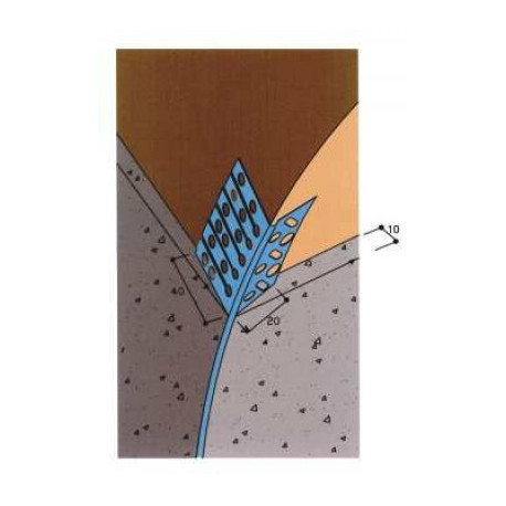 Paraspigolo ad arco interno per intonaco, in lamiera zincata gr. 200/m2. Lunghezza 300 cm. Spessore intonaco mm 10. Dimensioni mm 20x40.