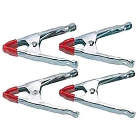 Set 4 pezzi, in acciaio zincato, ganasce ricoperte in plastica. Apertura ganasce 30 mm, lunghezza 100 mm.