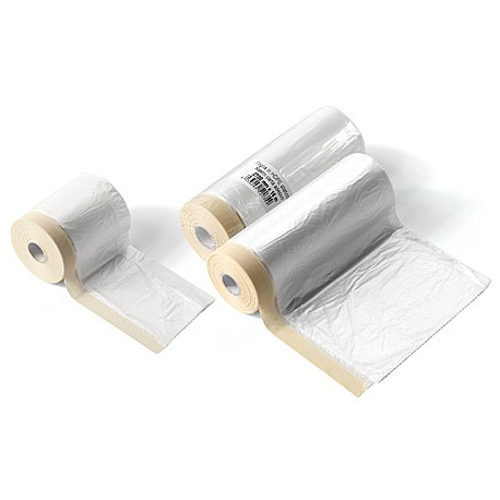 Telo protettivo in film HD PE per mascheratura accoppiato con nastro adesivo in carta.