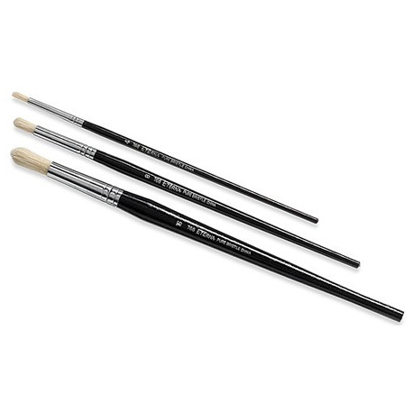 Setola bianchissima. Per colori ad olio ed acquarello. Manico in legno laccato. Ghiera cromata.