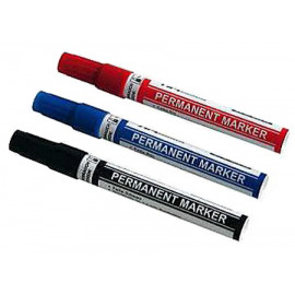 Set 3 pezzi pennarelli indelebili, per scrivere su tutti i materiali. Punta tonda. Colore nero, rosso e blu.