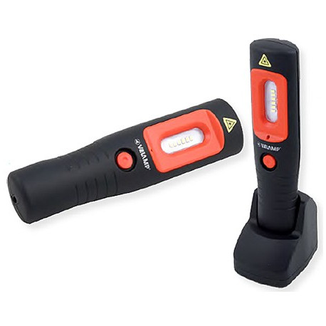 Lampada con tecnologia SMD LED ricaricabile in ABS. 3W. 300 lumen. Luce diffusa. Autonomia 4 ore 100% e 8 ore al 50%. Dotata di gancio posteriore magnetico. Durata 30000 ore. Dimensioni 58x40x240 mm. =