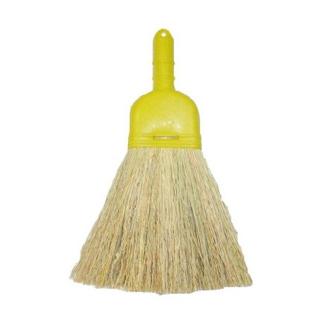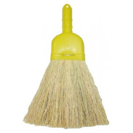 In saggina nazionale, manico in PVC. Lunghezza totale mm. 270, larghezza scopino mm.150.