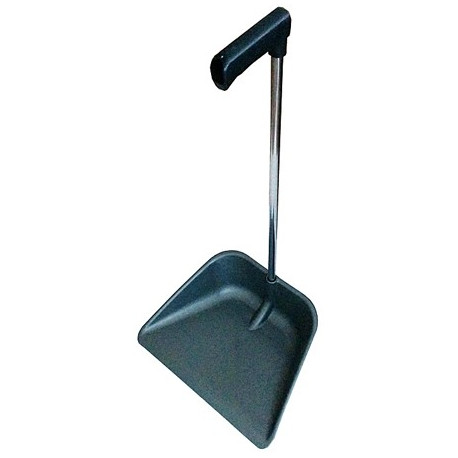 Pattumiera in plastica colore grigio, larga 40 cm. Manico in metallo con impugnatura ergonomica.