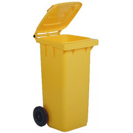 Realizzato in polietilene ad alta densita', lavabile e sterilizzabile. Volume l 120. Ruote da mm 200. Fermasacco in metallo da ordinare a parte.