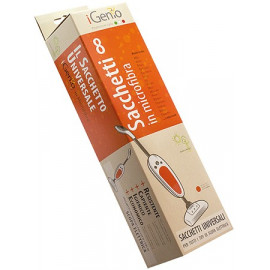 Supporti con fissaggio a scatto per sacchetti iGenio. Colore arancio per scope elettriche, grigio per aspirapolvere a traino. Ricercate il supporto corrispondente al modello di aspirapolvere o scopa sul sito www.i-genio.it.