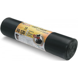 Sacchi in polietilene con laccio di chiusura. Saldatura laterale estesa antigoccia. Colore nero. Rotolo da 10 sacchi.