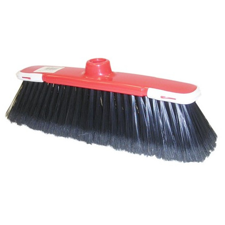 Scopa per interni con paracolpi in gomma. Fibre sintetiche. Dimensioni: base mm 270x50, spazzola mm 350x80x80