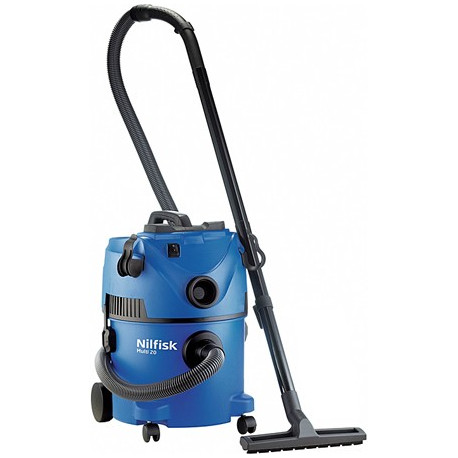 Aspiratore con motore silenziato e fusto il polipropilene. Potenza max 1200 Watt. In dotazione: filtro in spugna, filtro in tessuto, spazzola per polvere e liquidi, lancia piatta, tubo flessibile da mm 35 e prolunga rigida. Con scuotifiltro pneumatico e funzione soffiante. Capacita' 18 lt. Peso 5,4 kg.