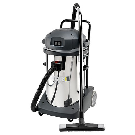 Aspiratore con 2 motori bistadio silenziati e fusto in acciaio inox. Potenza max 2400 Watt. Sistema anti-elettrostaticita'. Tubo di scarico da serbatoio. In dotazione: filtro in tessuto, spazzola per polvere e liquidi, lancia piatta, tubo flessibile da mm 40, prolunga rigida in acciaio e spazzola rotonda. Capacita' 78 lt.