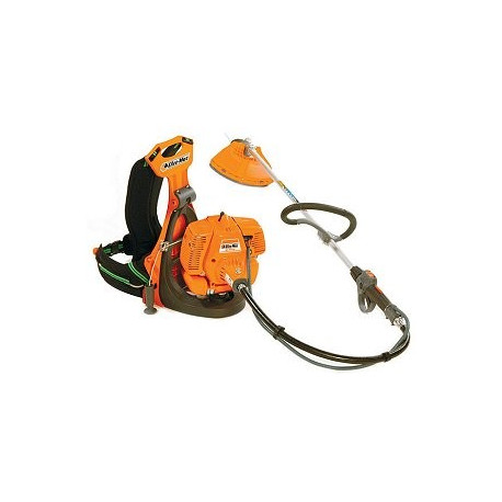 Decespugliatore professionale a zaino. Telaio con cuscino morbido. Dispositivo antivibrazioni. Sistema di avviamento 'EASY-ON' che consente una messa in moto morbida e senza strappi. Potenza Kw 2,1. Tubo trasmissione diam.mm.26. Peso kg.11.