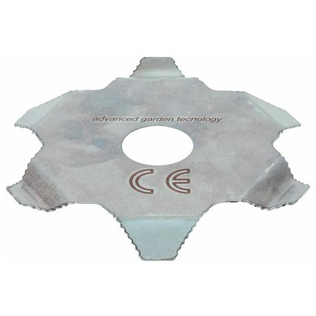 Disco in acciaio a settori con profilo seghettato. Attacco universale, funzione antiavvolgimento erba. Utilizzo abbinato a testine e dischi in acciaio.
