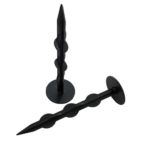 Chiodi in Nylon, leggeri e pratici, con eccezionale resistenza agli agenti atmosferici. Adatti per il fissaggio di teli in TNT, film-pacciamatura e reti o teli al terreno. Dimensione testa 22 mm. Lunghezza 15 cm.