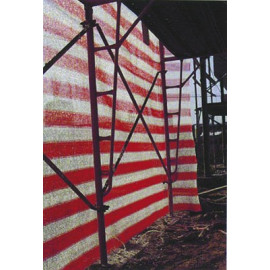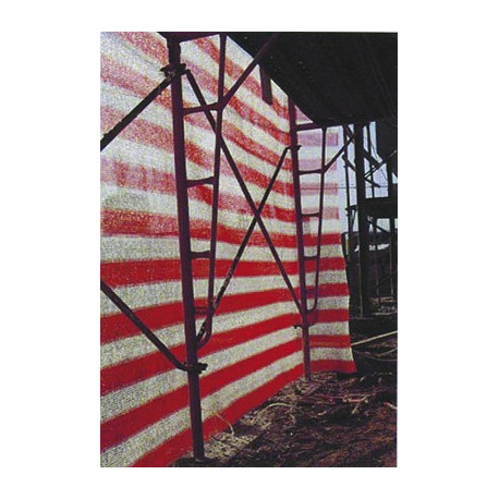 Rete tessuta a righe longitudinali bianco/arancio robustissima e leggera. Realizzata con filati di prima qualita', stabilizzati UV. Altezza cm 200. Rotoli da m 50.