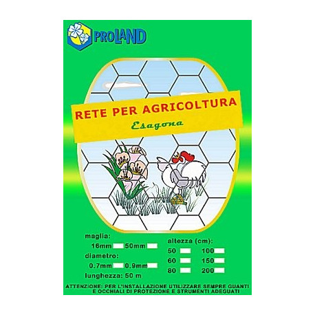 Rete a maglie esagonali zincata. Rotoli m 50.
