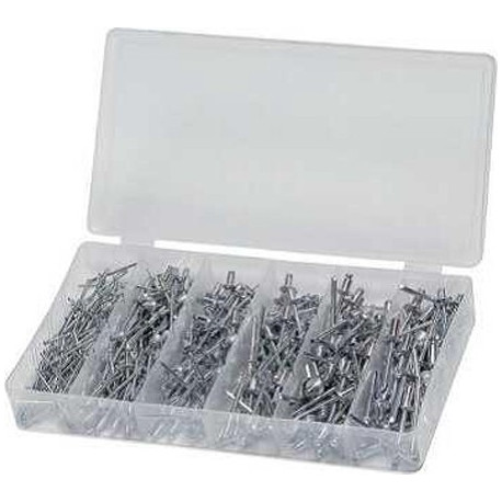 Assortimento 400 pezzi, 100 (2,4x6 mm) - 100 (3,2x6 mm) - 50 (4,0x6 mm) - 50 (4,0x10 mm) - 50 (4,8x6 mm) - 50 (4,8x10 mm)