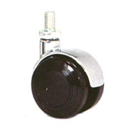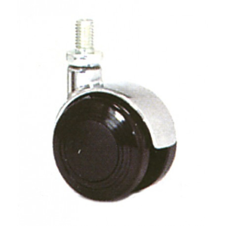 Supporto in lega di zama lucida. Ruota in poliammide 6 rivestita in poliuretano. Perno filettato lunghezza mm 15, ruote diametro mm 50. Portata kg 60.