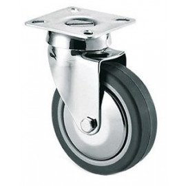 Supporto in acciaio zincato, ruota in gomma grigia.