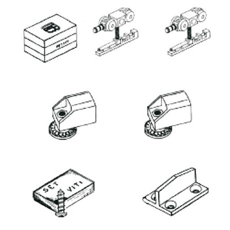 Composto da: 2 carrelli, 2 stop, 1 guida inferiore e viti di fissaggio.