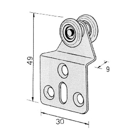 Ruota doppia in poliammide, rivestita in poliuretano. Con supporto in poliammide. Piastra Dimensione 38x38 mm.