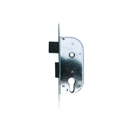 Per serramenti metallici. Con scrocco e catenaccio a due mandate, quadro maniglia passante. Dimensioni scatola mm.58x130x16. Frontale mm.195x22. Entrata mm.30