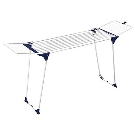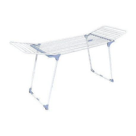 Realizzato in acciaio trattato con polveri epossidiche. Estensibile da cm.110 a 190. Dispone di 28 mt. lineari per stendere. Dimensioni (lxpxh) cm.270x57x100.