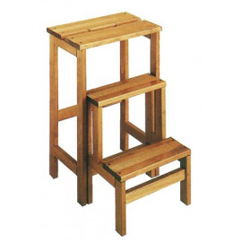 Scaletta sgabello a 3 gradini in legno di faggio massiccio. Gradini antiscivolo ribaltabili per un minor ingombro. Dimensioni cm 59x39x24. Colore faggio naturale