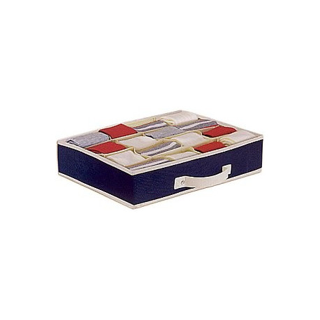 Scatola automontante in tessuto TNT traspirante per cassetti sempre in ordine. Suddivisa in organizer da 16 posti. Colori assortiti. Dimensioni cm. 35x28x9