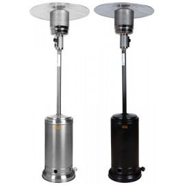 Potenza kw 13. Ombrello termico con accensione piezoelettrica. Superficie irraggiata 20/25 mq. Con valvola anticaduta. Struttura in acciaio. Bruciatore in acciaio inox. Completo di ruote per la movimentazione. Senza regolatore gas. Consumo medio 0,7 kg/h. Dimensioni 813x813x2200h mm.