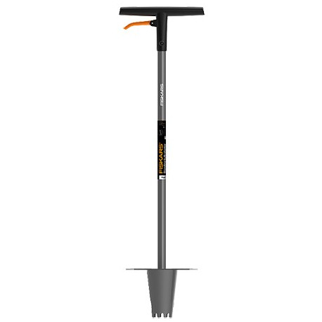 Per scavare e riempire buchi rapidamente senza piegarsi o inginocchiarsi. Leva poggiapiede antiscivolo. Cono con denti affilati che permettono di penetrare anche in terreni duri. Comoda leva-grilletto che permette il rilascio del terreno ricoprendo il buco e il bulbo. Manico robusto in acciaio. Scava fino a 150 mm di profondita'.