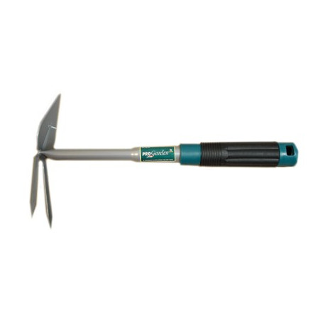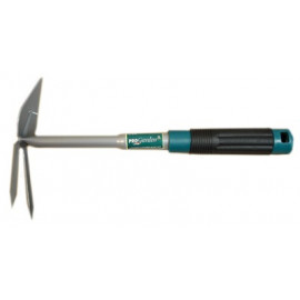 Con lama a cuore, bidente e manico in plastica bicomponente.