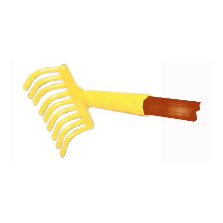 Rastrellino a 9 denti. In polipropilene giallo. Larghezza cm 14