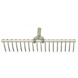 Scopa larga 25 denti, per lavorare su ampie superfici. Materiale plastico PBT. Il disegno arrotondato dei denti e' stato progettato per evitare che rami e foglie rimangano incastrati. Dotata di pratico sistema di innesto rapido per il manico. Larghezza cm 52. Peso gr 230