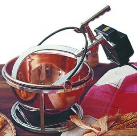 Con paiolo in rame e supporto in alluminio. Motore 220V - 50 Hz. Disponibili motori di ricambio.