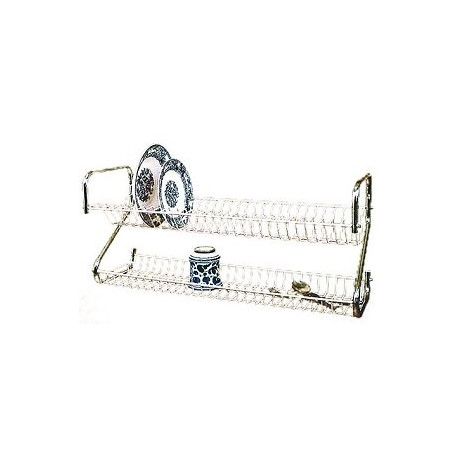 Con spalle in acciaio cromato diametro mm 14 e reggipiatti in filo di acciaio plastificato bianco. Dimensioni cm(pxh)23x32.