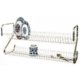 Con spalle in acciaio cromato diametro mm 14 e reggipiatti in filo di acciaio plastificato bianco. Dimensioni cm(pxh)23x32.