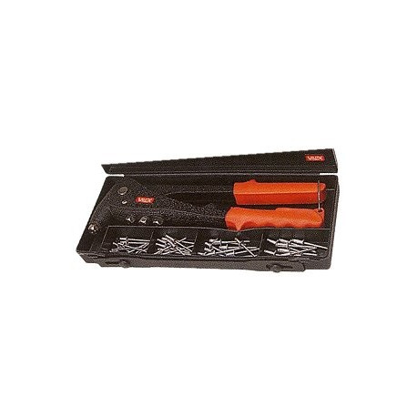 Per rivetti rame e alluminio diam.mm. 2,4 - 3,2 - 4,0 - 4,8. In valigetta plastica completa di 80 rivetti assortiti.
