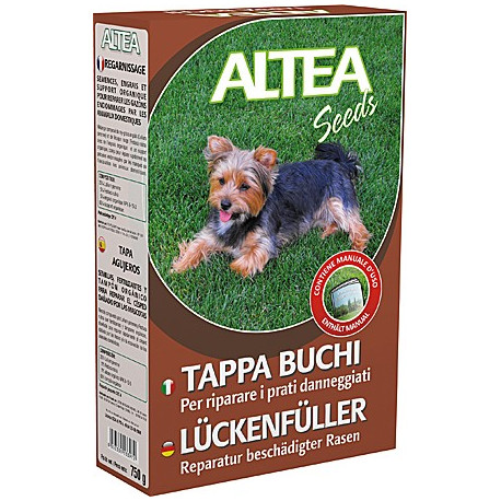 Prodotto idoneo per riparare velocemente il giardino di casa rovinato dalle deiezioni e/o dagli scavi dei propri animali. Prodotto composto da semi di Lolium perenne e Festuca rubra con l'aggiunta di fertilizzante e tampone organico studiato appositamente per recuperare rapidamente i prati danneggiati. Contenuto 750 gr.