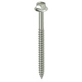 Viti zincate specifiche per fissaggi su legno, lamellari, truciolari senza pre-foro. Testa esagonale K10. Filettatura a passo rapido AA.