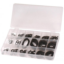 Scatola assortimento anelli elastici da 300 pz. Assortimento 6 misure per interni e numero 12 misure per esterni.
