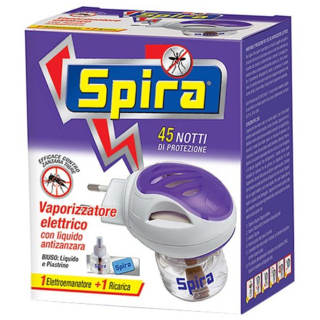 Funziona sia con liquido sia con le piastrine. Con la ricarica a liquido assicura 45 notti di protezione antizanzara. Spina orientabile orizzontale/verticale. Efficace contro la zanzara tigre.