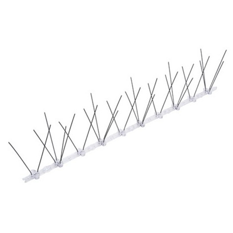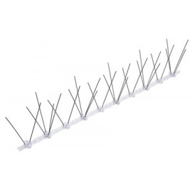 Dissuasore con base in policarbonato, dotato di una rosa di 40 punte alte 11 cm. disposte a ventaglio su un elemento di lunghezza 50 cm.