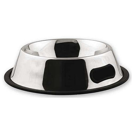 Ciotola in acciaio inox con bordino in gomma antiscivolo.