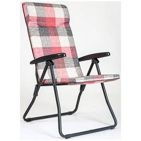 Struttura in acciaio verniciato con cuscino imbottito in cotone. Pieghevole e regolabile in 3 posizioni. Gambe svasate per una massima stabilita', molleggio con molle in acciaio zincato. Colore fantasie assortite. Made in Italy.