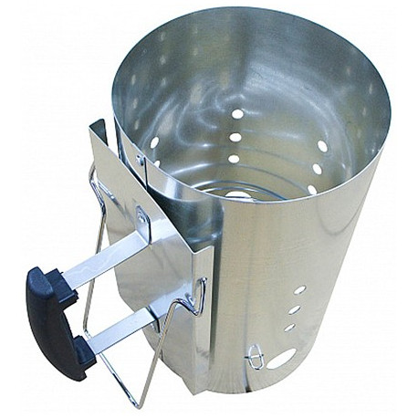 Accenditore in acciaio zincato per carbonella. Impugnatura ergonomica gommata con paracalore. Dimensioni 30x19x30,5 cm. Peso 2,8 kg.