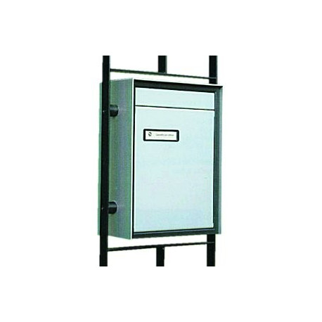 In alluminio con impostazione dall'alto. Porta ritiro con apertura a ribalta. Dimensioni mm.258x375x85-120. Apertura imbucalettere mm.230x23.