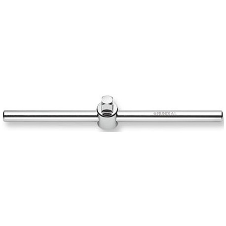 Leva a T con attacco quadro scorrevole da 1/4". In acciaio al cromo vanadio, finitura cromata. Lunghezza 115 mm.