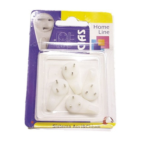 Ganci in nylon a tre punte in acciaio. Portata kg 14. Blister da pz.4.