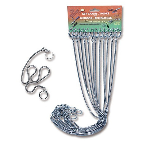 In ottone cromato con doppio gancio apribile. In cartella da 12 pz. Lunghezza totale 50 cm.